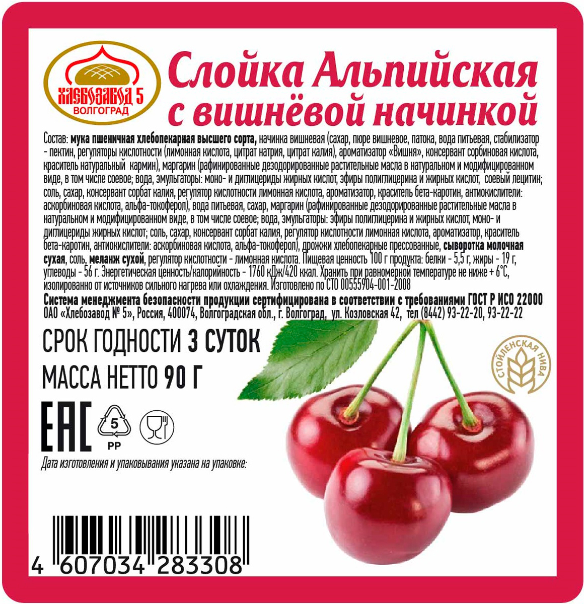 Слойка Альпийская с вишневой начинкой Хлебозавод №5