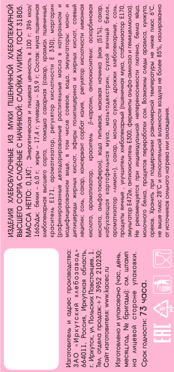 Слойка Улитка Иркутский ХЗ