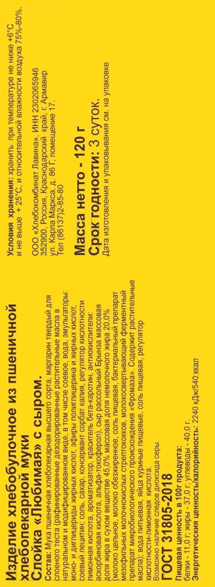 Слойка Любимая с сыром ХК Лавина