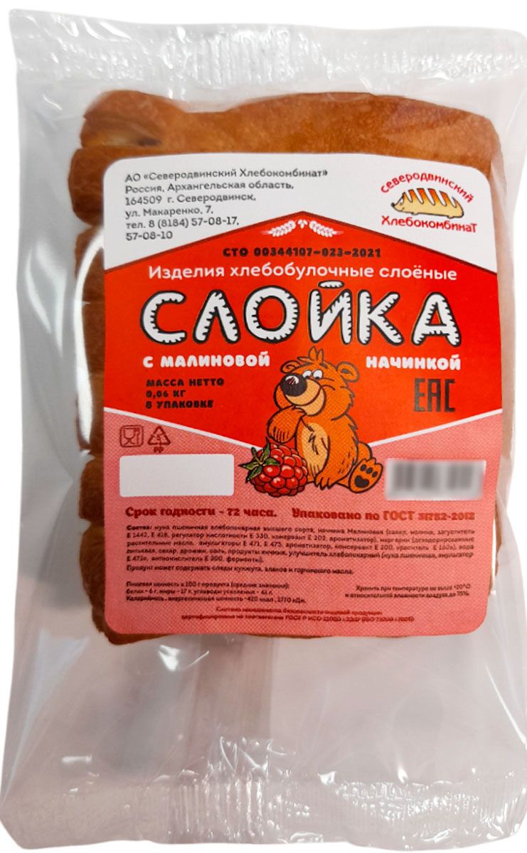 Слойка с малиновой начинкой Северодвинский ХК 60 г