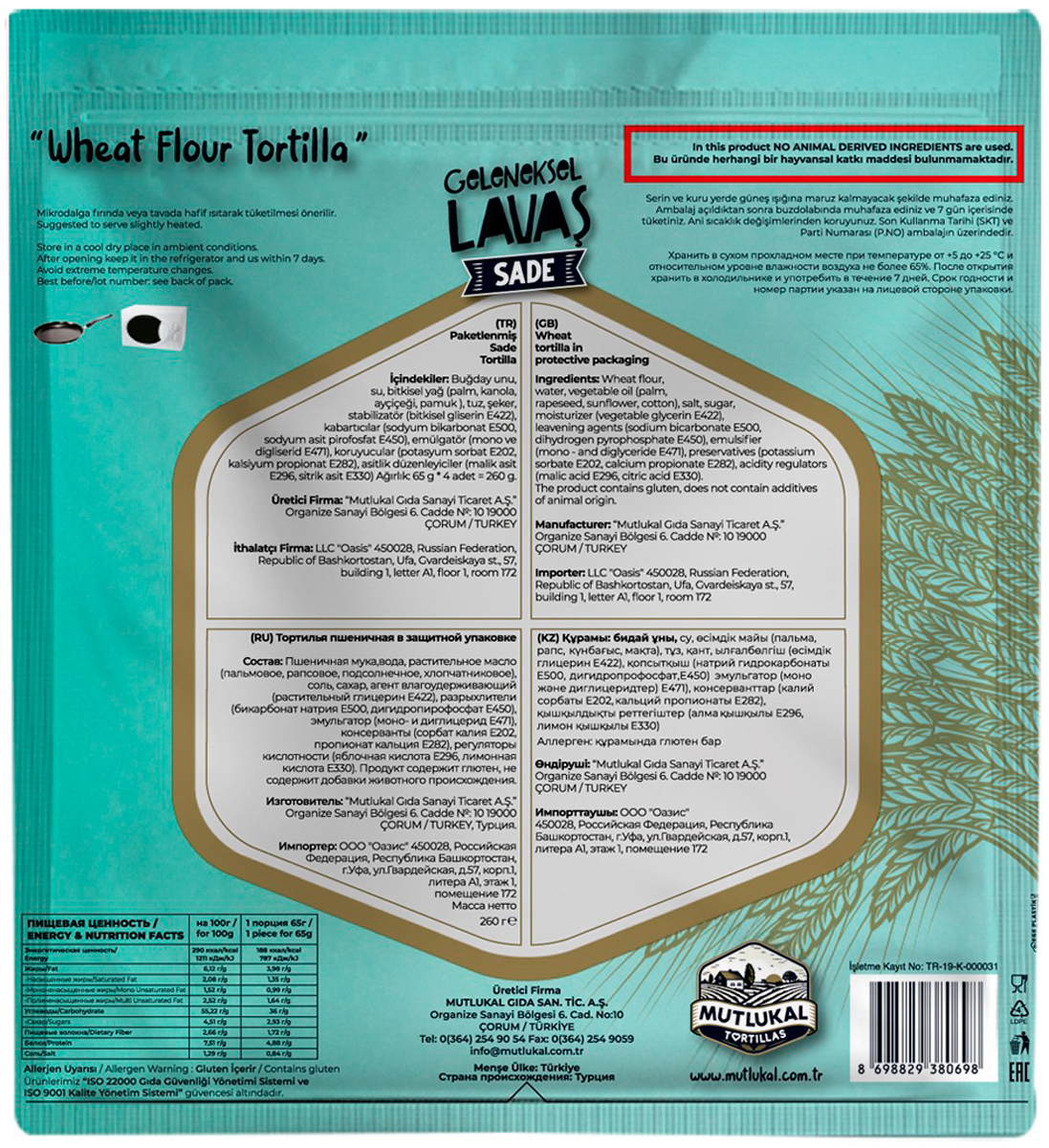 Вкусная, турецкая тортилья. Запах уксуса присутствует. Но если поджарить и добавить хорошей начинки мясо с овощами или сырную, класс!