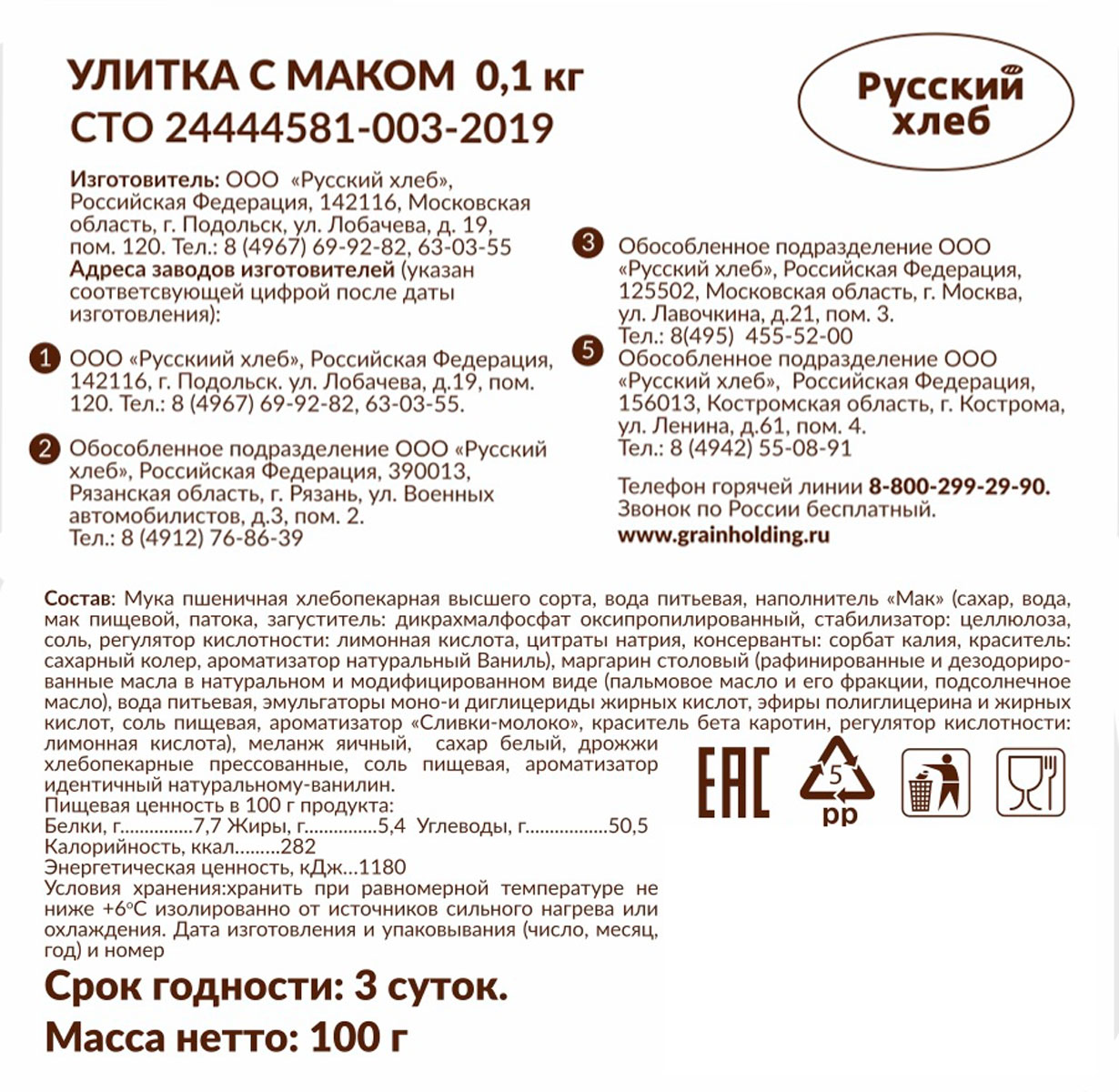 Улитка с маком Русский хлеб