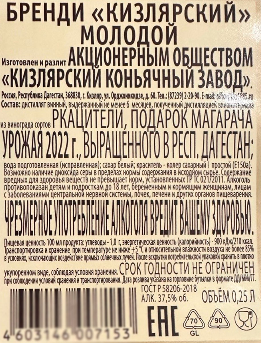 Кизлярский Молодой Бренди