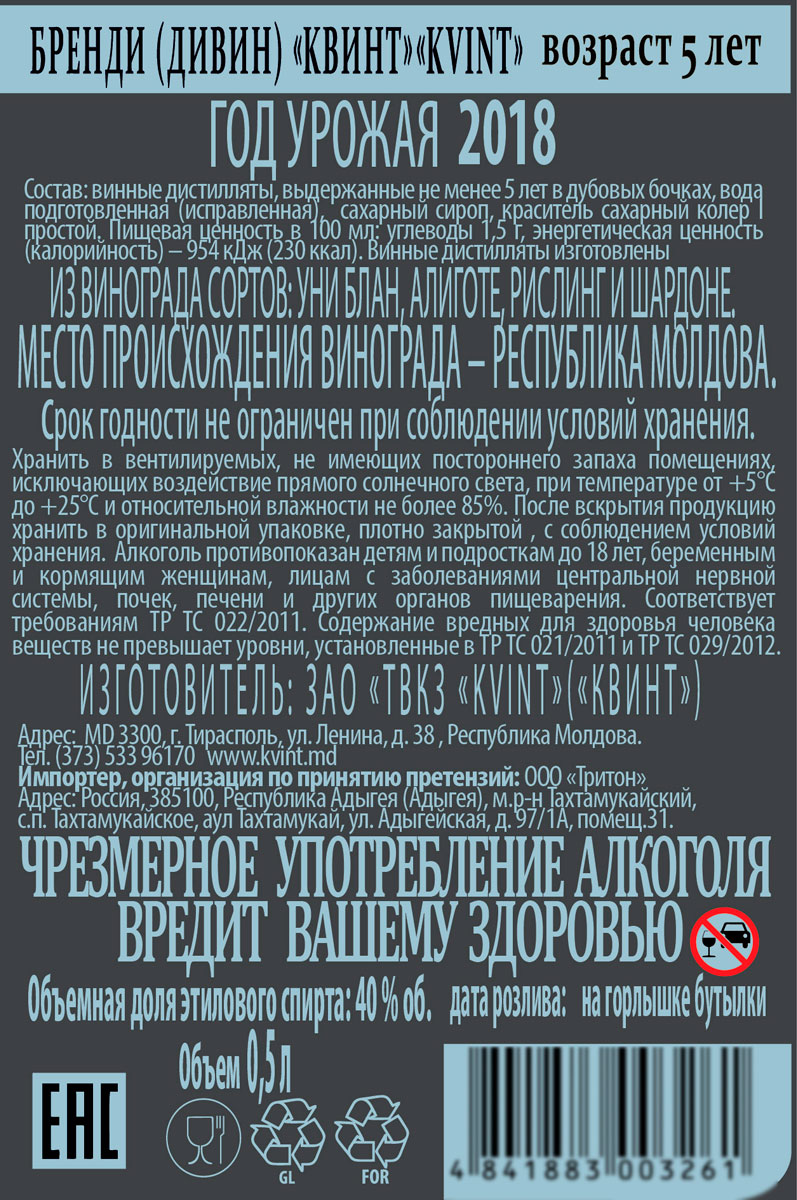 Бренди Квинт 5лет 0,5 л