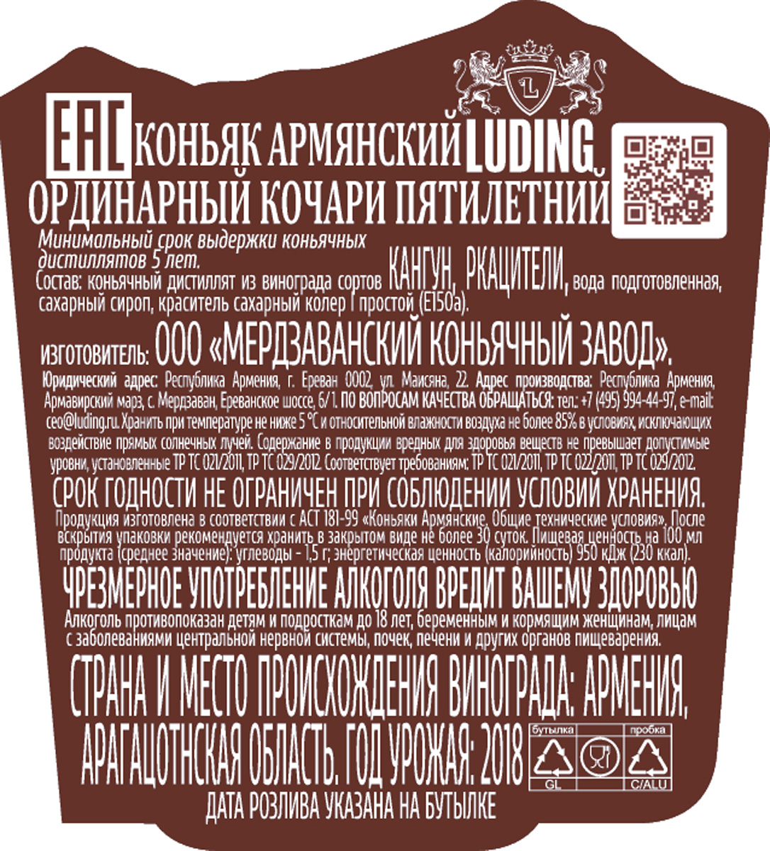Коньяк Кочари не менее 5 лет