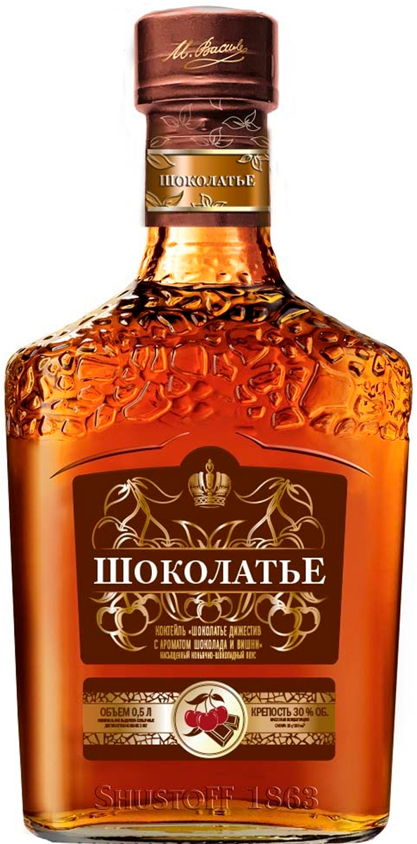Изысканный коньячно-шоколадный дижестив, созданный на основе высококачественных коньячных спиртов 5-летней выдержки в сочетании с натуральными экстрактами шоколада, фруктов и пряностей. Отличается сложным, чистым ароматом с шоколадными тонами, а также деликатным вкусом с нотами шоколада и легкими вишневыми оттенками. Обладает округлым мягким вкусом с легкой пряностью в длительном послевкусии. Идеально сочетается с шоколадом, эклерами, тортами, мороженым или в качестве отдельного десерта.