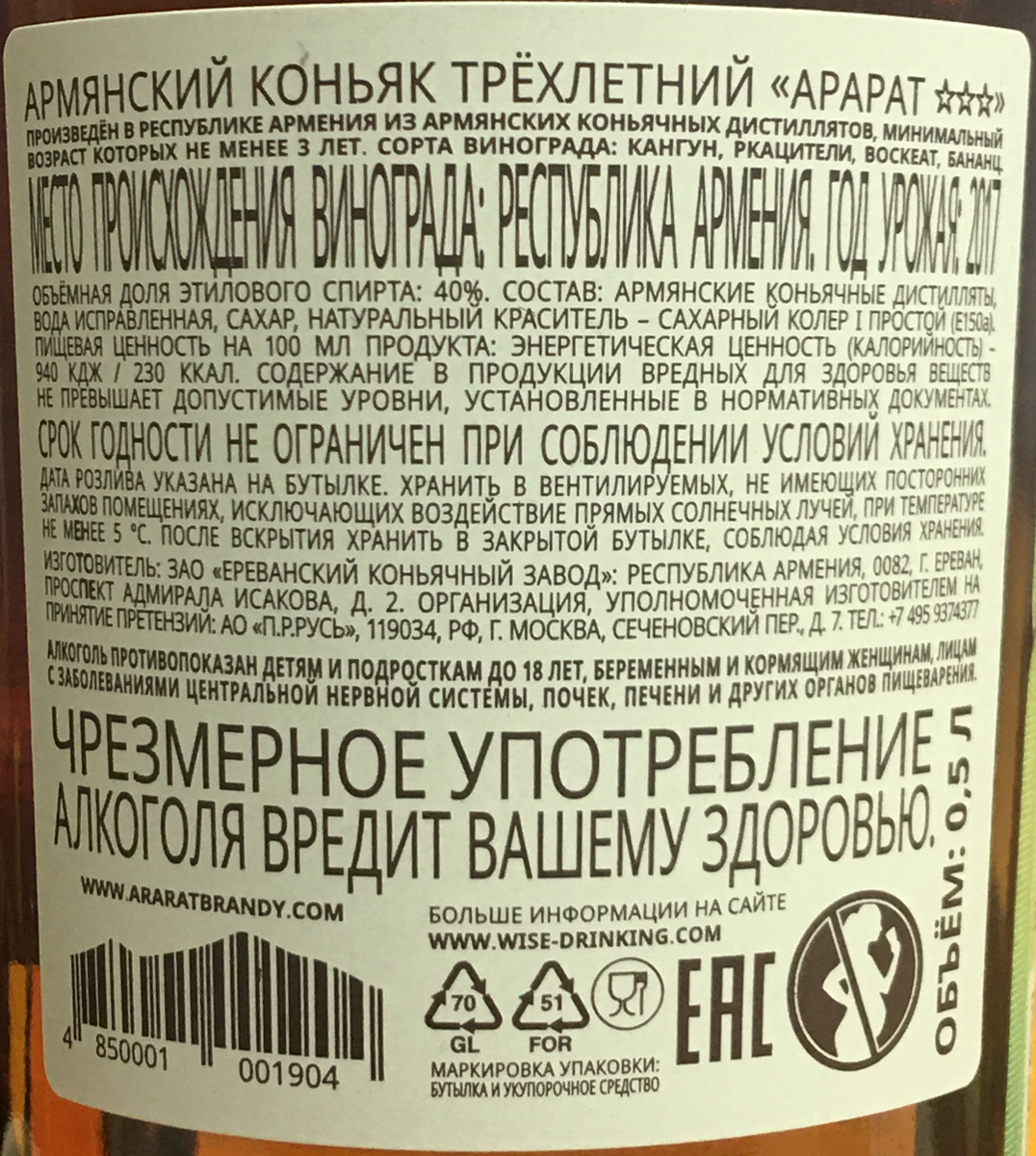 Трехлетний так себе, можно было и не завозить. Мой любимый это пятилетний. Тоже бы хотел его видеть в объеме 0,7. Даешь Арарат в КБ!!!)))