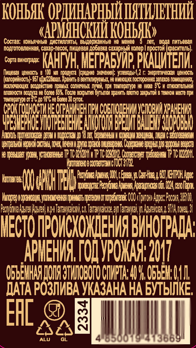 Неожиданно приятный Коньяк, ожидал подвоха, но нет, пьётся мягко, аромат винограда присутствует. Такое ощущение что не паль, как обычно у армян и грузин. Приятное тепло в груди, приятное послевкусие. Рекомендую, как минимум, попробовать