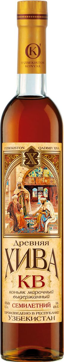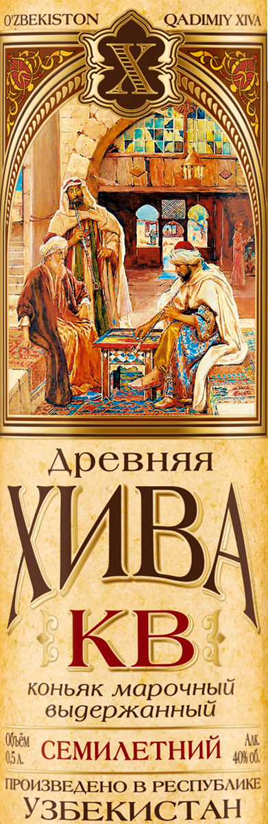 Коньяк марочный выдержанный «КВ» семилетний «Древняя Хива» готовится по особой технологии с использованием высококачественных коньячных спиртов. Долгое послевкусие богато оттенками дуба с легкими нотами ванильной карамели. Минимальный срок выдержки коньячных дистиллятов — 7 лет.Идеален как дижестив с сигарой, фруктами, шоколадом.