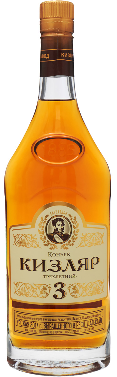 Коньяк «Кизляр» производят исключительно из винограда, выращенного в республике Дагестан. Это наиболее традиционный коньяк, рецептура которого была разработана более шестидесяти лет назад. Коньяк золотистого цвета, в аромате свежий и элегантный, с нотками свежего винограда и полевых цветов. Характеристика вкуса: полный, мягкий, с оттенками фруктов и орехов.