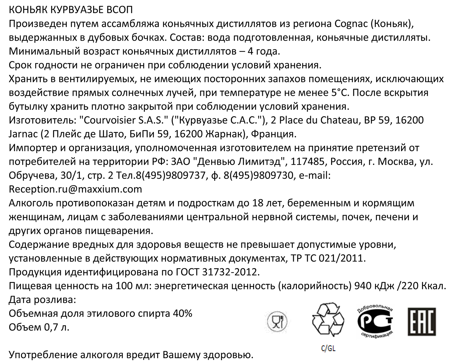 Коньяк Курвуазье ВСОП п/к 0,7