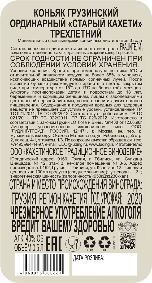 Изготовлен в Грузии из специально отобранных виноматериалов по традиционному кахетинскому методу и выдержан в грузинских дубовых бочках «Иберика». Коньяк имеет насыщенный янтарный цвет. В букете гармонично сочетаются ванильные тона с ароматом ореха, свежего винограда и пряностей.