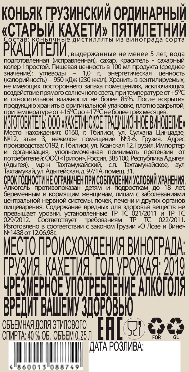 Коньяк Старый Кахети 5 лет