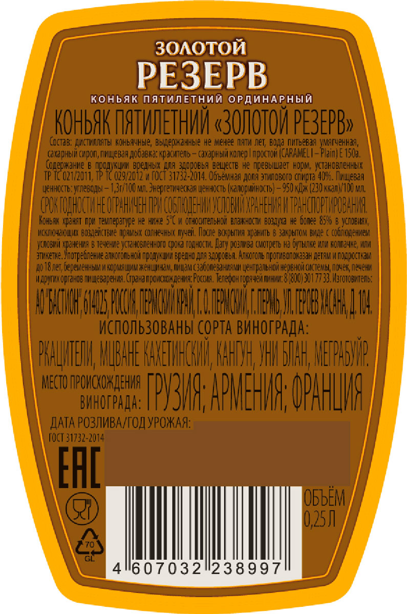 Коньяк Золотой Резерв 5 лет