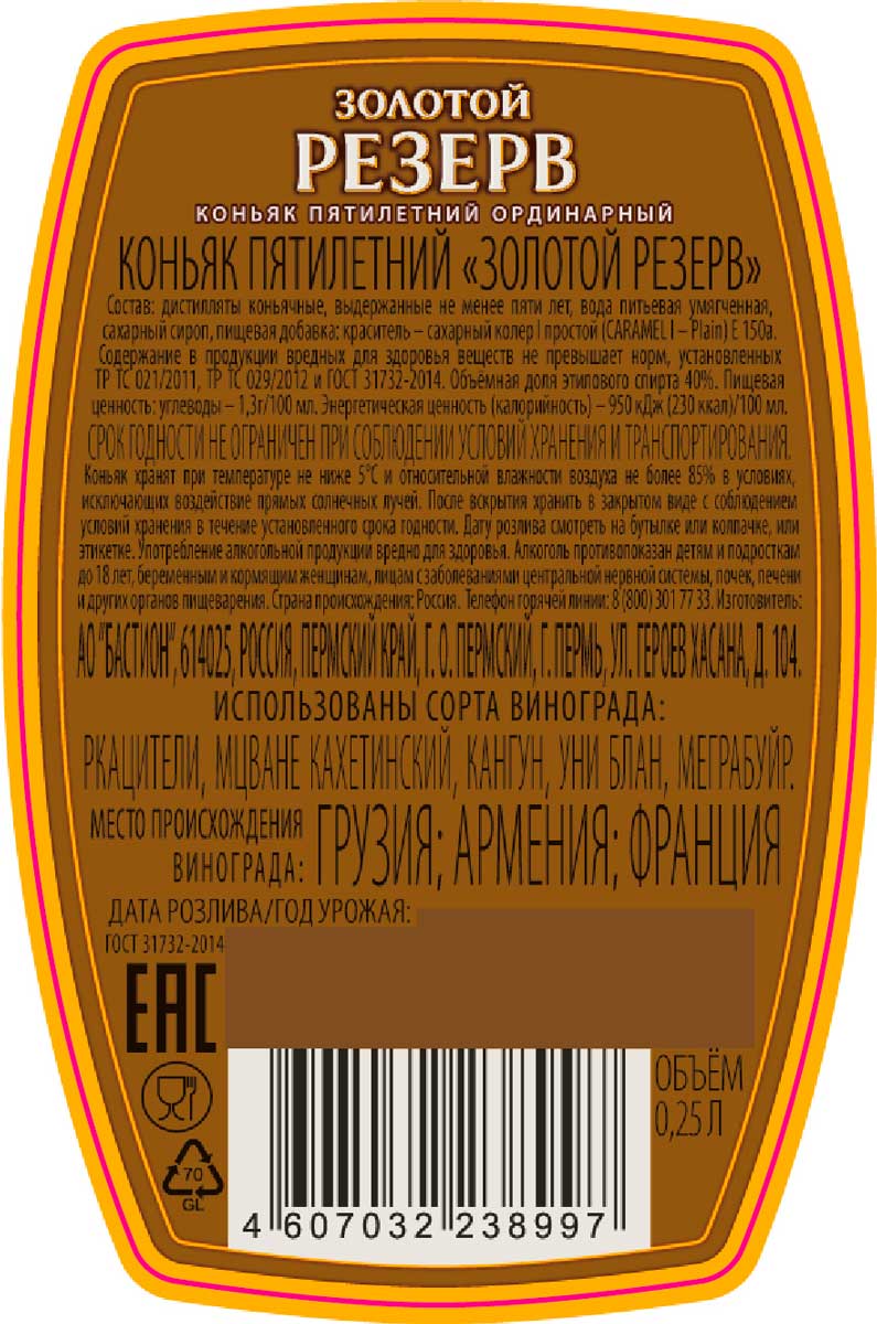 Коньяк Золотой Резерв 5 лет 0,5 л