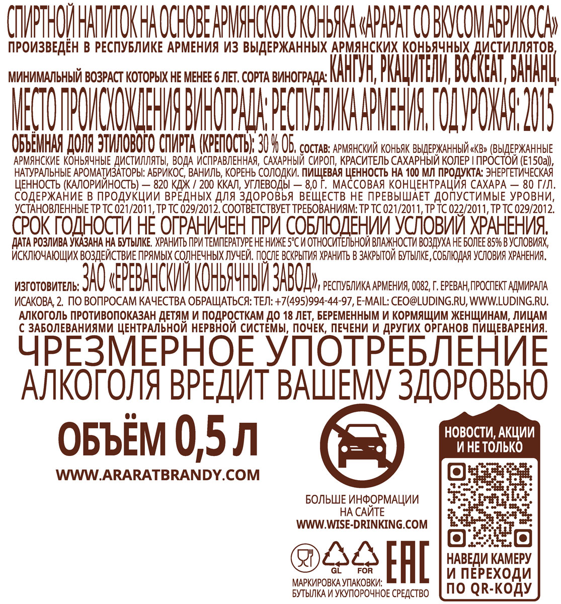 Напиток спиртной Арарат Априкот со вкусом абрикоса п/к 0,5 л