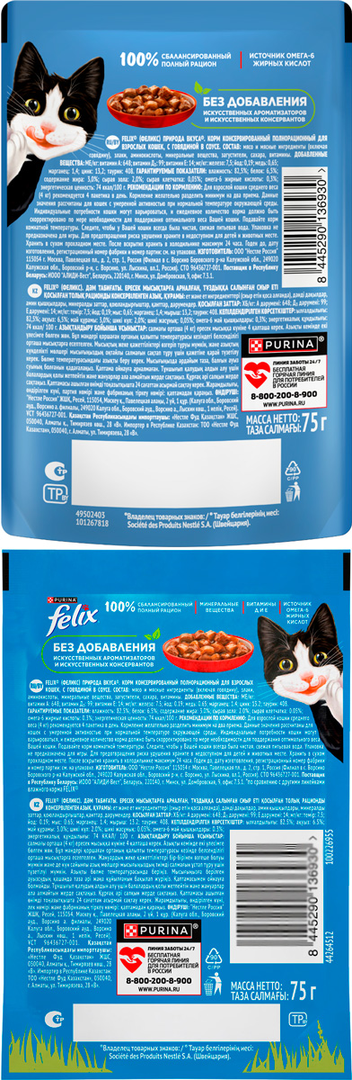 Эксперты Purina, разрабатывая влажные корма для домашних питомцев, создали насыщенный корм для взрослых кошек FELIX® «Природа вкуса» с аппетитными кусочками в сочном соусе. Полнорационный влажный корм обеспечит вашего любимца всеми необходимыми питательным веществами.