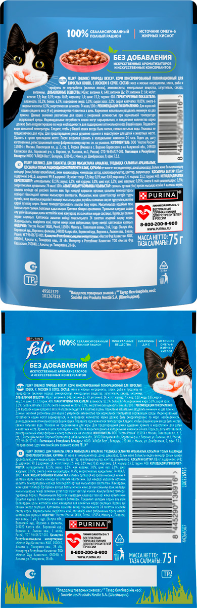Эксперты Purina, разрабатывая влажные корма для домашних питомцев, создали насыщенный корм для взрослых кошек FELIX® «Природа вкуса» с аппетитными кусочками в сочном соусе. Полнорационный влажный корм обеспечит вашего любимца всеми необходимыми питательным веществами.