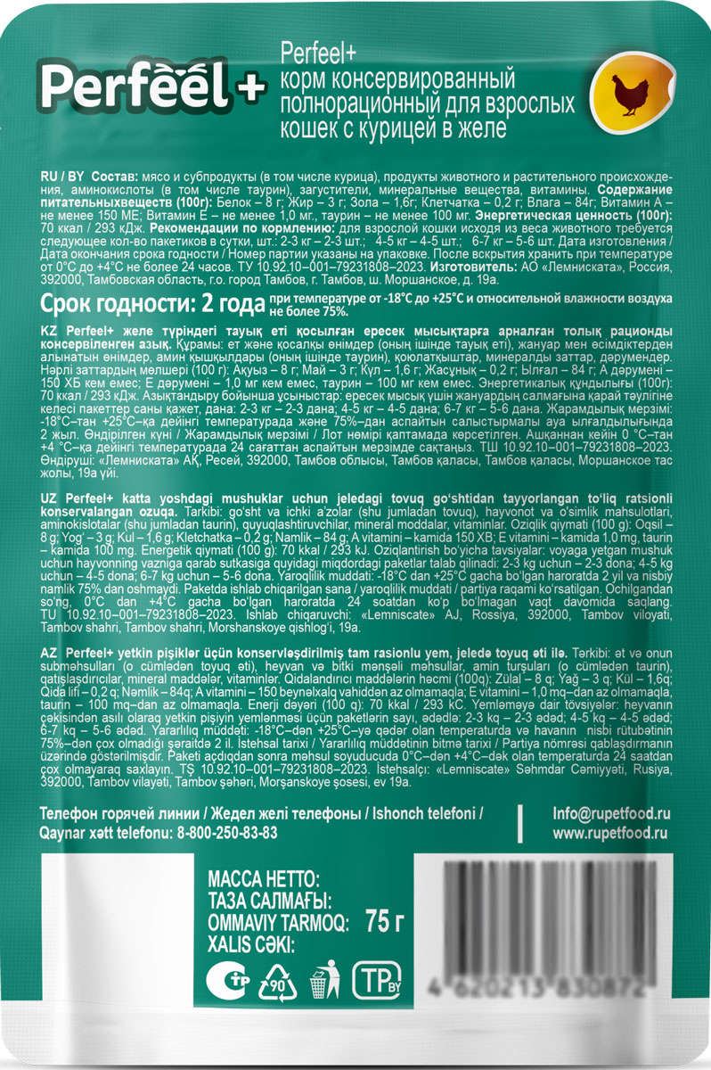 Корм Perfeel с курицей в желе 75 г