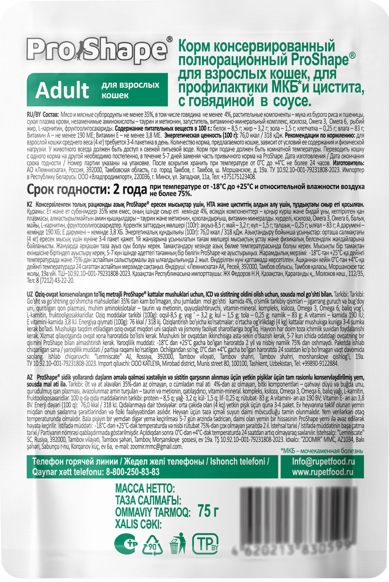 Корм ProShape с говядиной в соусе 75 г