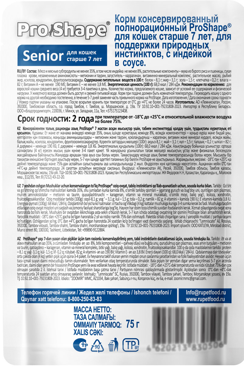 Корм ProShape с индейкой в соусе 75 г