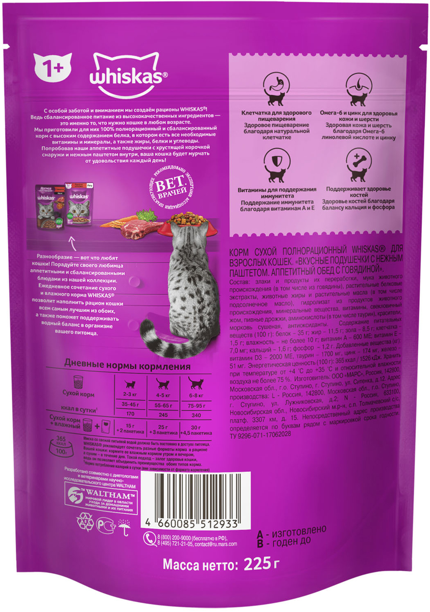 благодаря подушечкам кошка намного активнее есть сухой корм, а так обычные сухие никак( так что вискас наше спасение в этом вопросе