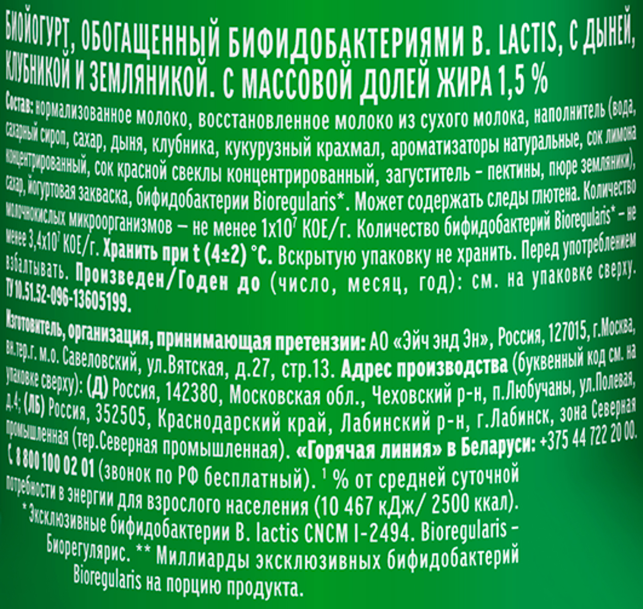 АктиБио питьевой йогурт дыня, клубника, земляника
