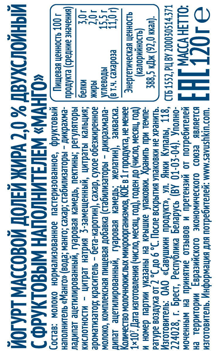 Йогурт Савушкин Манго 2% 120 г