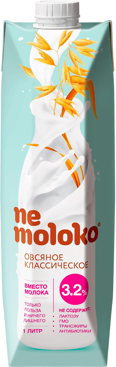 Nemoloko овсяное классическое с жирностью 3,2% — это растительная альтернатива традиционному цельному молоку. Пейте Nemoloko вместо молока, добавляйте в кофе и чай, используйте для приготовления завтрака – каши, омлет, смузи, хлопья или блинчики. С Nemoloko всё получается очень вкусным. Используемая компанией технология, позволяет сохранить полезные свойства овса и превратить этот замечательный злак в жидкий питьевой продукт, богатый пищевыми волокнами, витаминами, микро- и макроэлементами, а также содержит бета-глюкан овса.