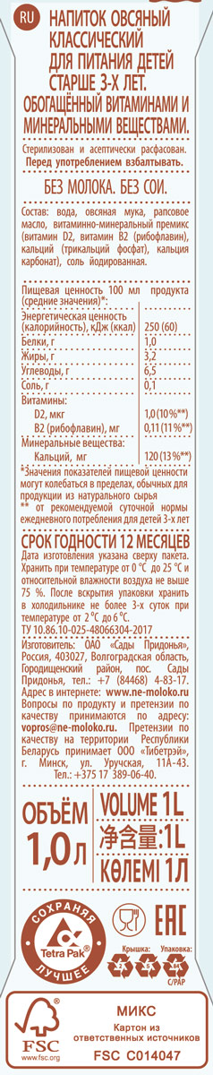 Немолоко овсяное классическое