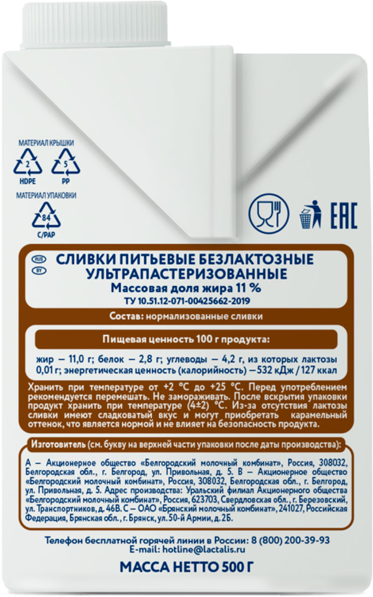 Безлактозные ультрапастеризованные сливки Parmalat. Идеальны для чая и кофе.