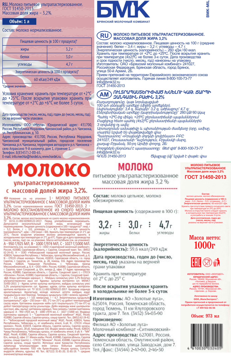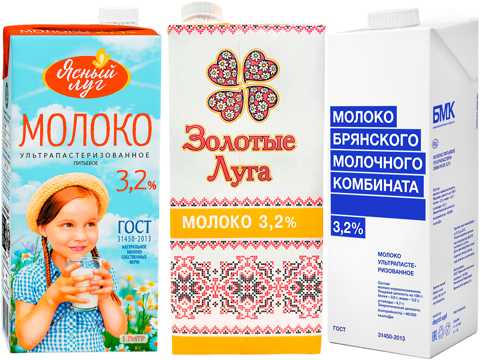 Молоко ЭкоНива / Золотые луга / с Нашей Фермы / Добрая Буренка / Село Зеленое