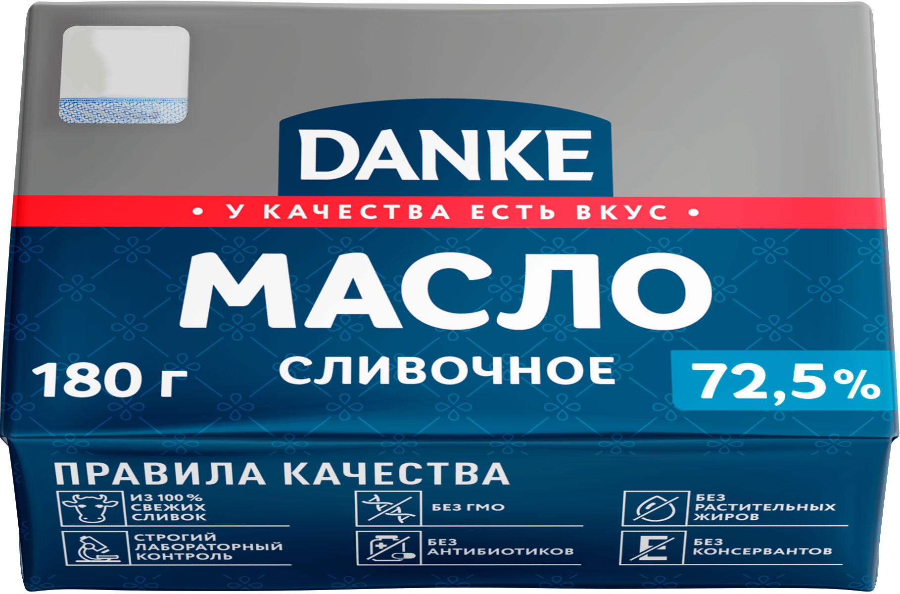 Масло сливочное Danke отличается плотной, пластичной и однородной консистенцией, имеет сливочный вкус с привкусом пастеризации. Предназначено для употребления в пищу и использования в кулинарии.