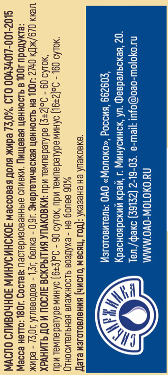Масло сливочное Минусинское 73%