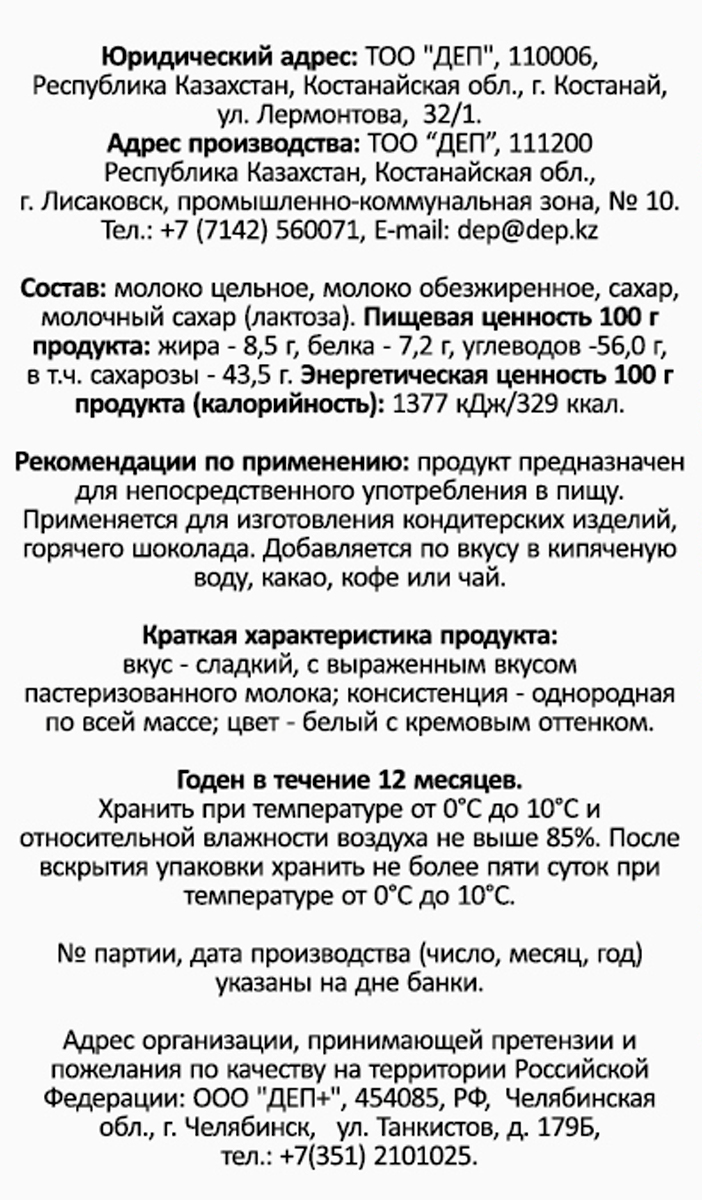 Сгущенка Сгущенное молоко ДЕП