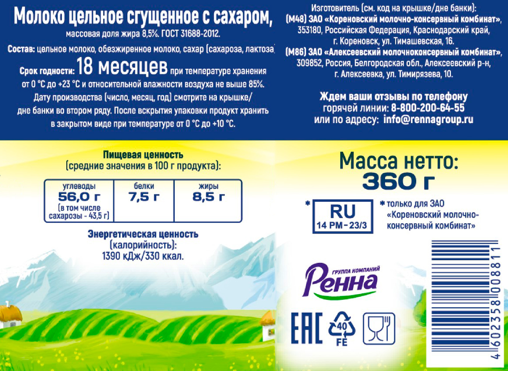 Сгущённое молоко «Коровка из Кореновки» — любимое всеми с детства лакомство, настоящее, густое и вкусное, приготовленное из «живого» кубанского молока.