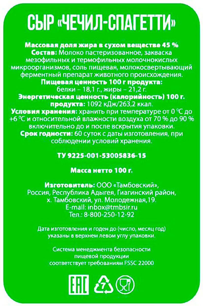 Сыр Чечил- спагетти 45% 100 г