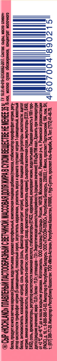 Сыр плавленый Hochland с ветчиной — это настоящее качество любимого сыра в традиционном формате упаковки. Плавленый сыр Hochland производится из классического полутвердого сыра с добавлением кусочков настоящей ветчины. Такой блочок идеально подходит не только для бутерброда, но и для использования в кулинарии. Пластичная консистенция плавленого сыра Hochland с ветчиной позволяет легко намазать его на пшеничный тост, крекер или круассан. Бутерброд или любимая выпечка под слоем сливочного сыра идеально сочетаются с чашкой ароматного чая или кофе! Блочок с ветчиной также удобно есть без хлеба, нарезав на кусочки, поскольку он хорошо держит форму. Плавленый сыр Hochland с ветчиной в форме прямоугольного блочка подходит для приготовления крем-супов, паст, гратенов, сырных шариков, пицц и куриных биточков.