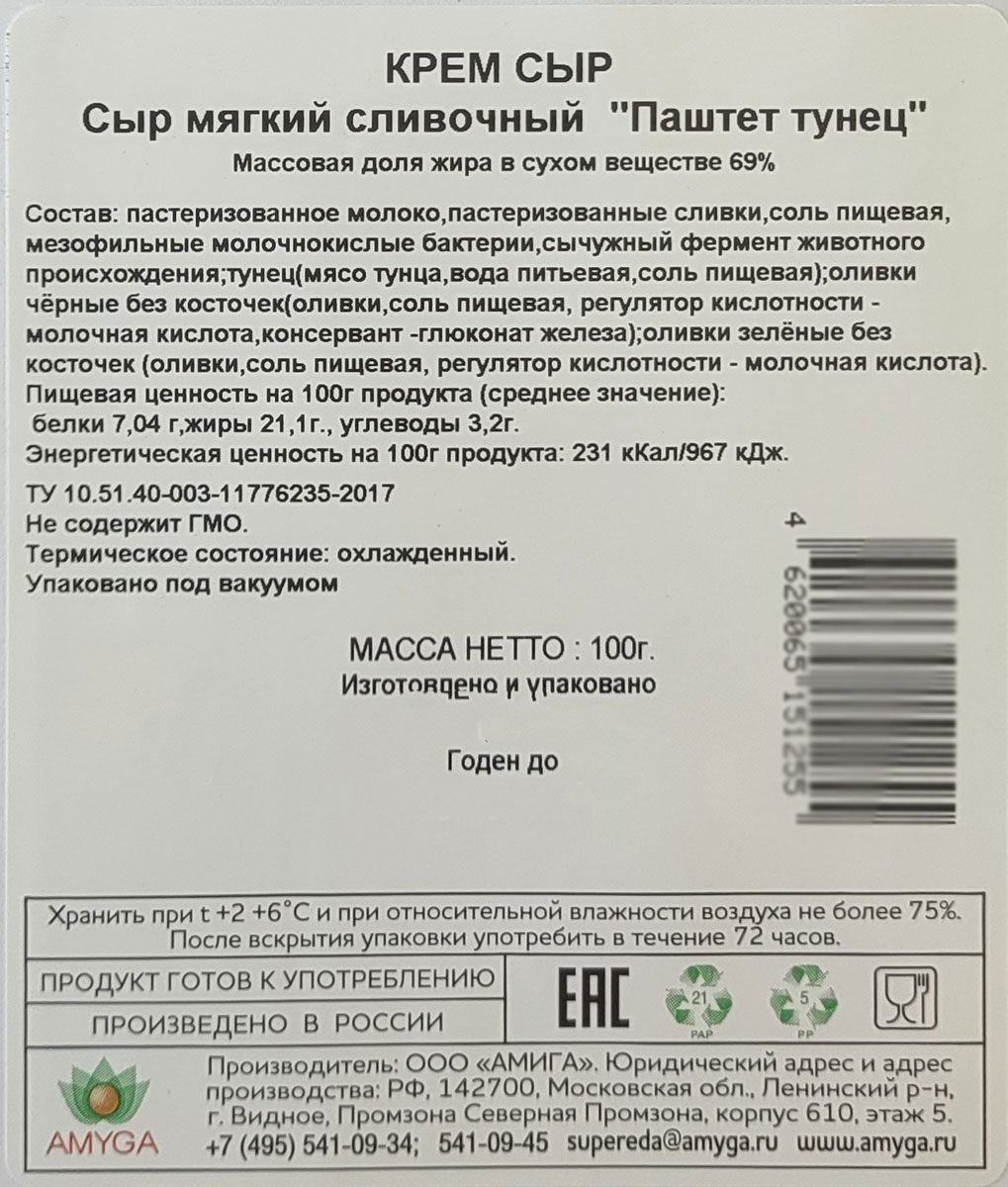 Крем-сыр Amyga Паштет-тунец