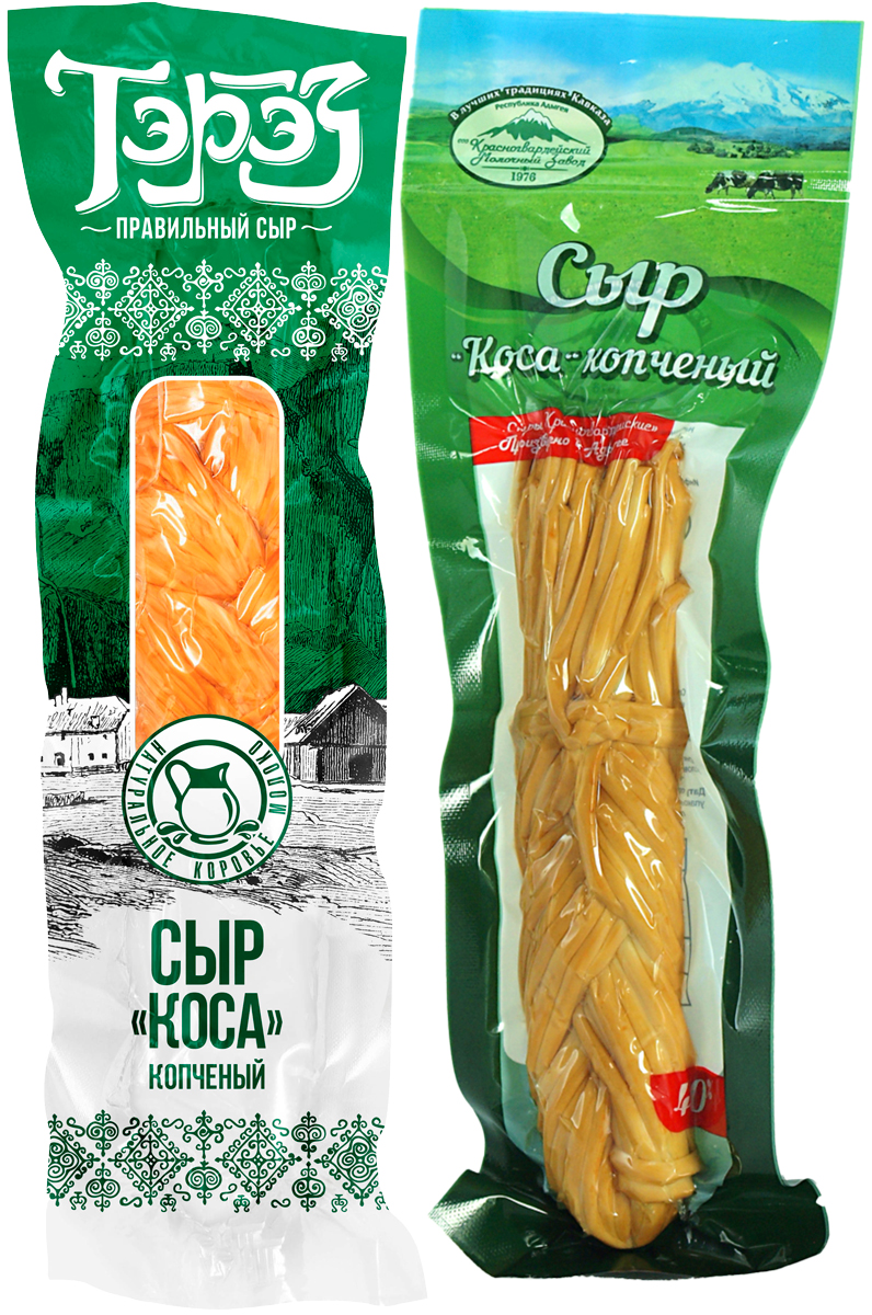 Среди множества сырных изделий сыр «Косичка» отличается своей оригинальной формой: тонкие нити слегка подкопченного сыра, стянутые в жгуты-косички, невозможно спутать ни с чем другим. Именно форма, напоминающая девичью косу, и стала отличительной чертой этого копченого сыра. На запах этот сыр такой же, как и любой другой кисломолочный сыр. А вот вкус у него очень пикантный: ярко выраженный, с легкой остротой и характерным копчено-солоноватым послевкусием. Копченый сыр косичка содержит в себе большое количество фосфора и кальция. Это вкусный и полезный перекус, который можно взять куда угодно!
