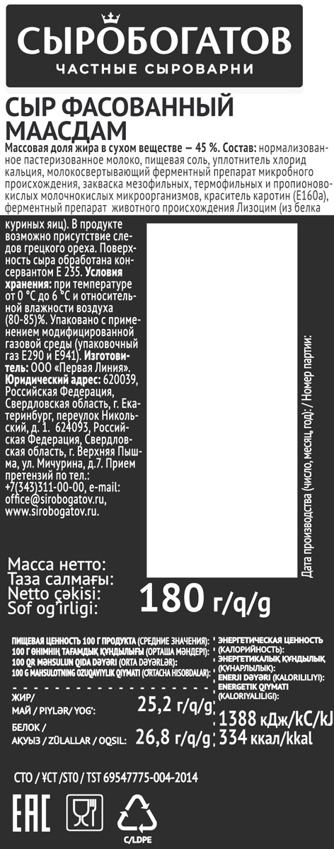 Сыр отличный. Очень люблю маасдам, перепробовала много брендов, Сыробогатов - мой лидер. Структура, вкусовые качества все на высоте!