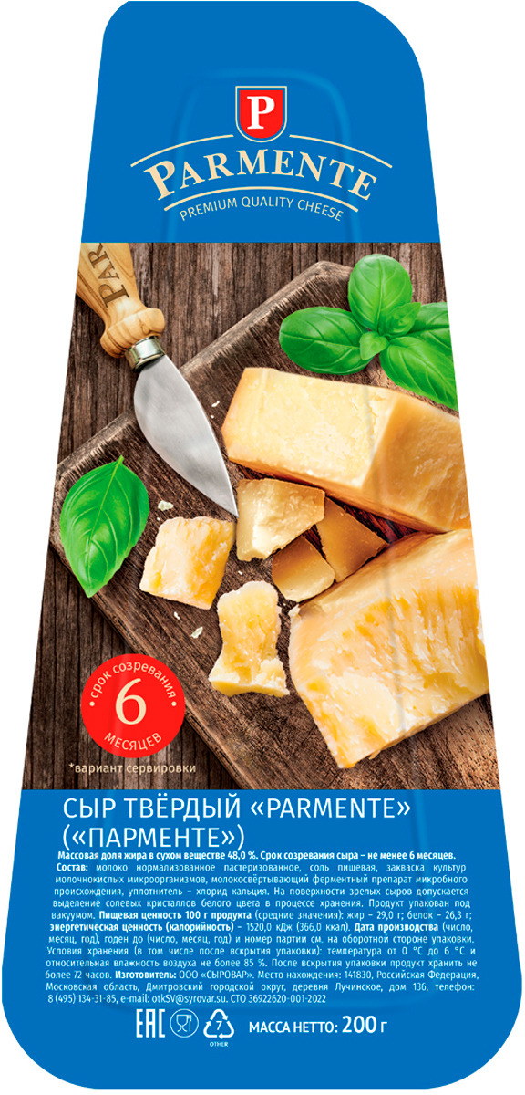 Парментте сыр твердых сортов . Подходит под белое вино,прекрасно показал себя в салатах. Имеет терпкий, сливочных вкус .