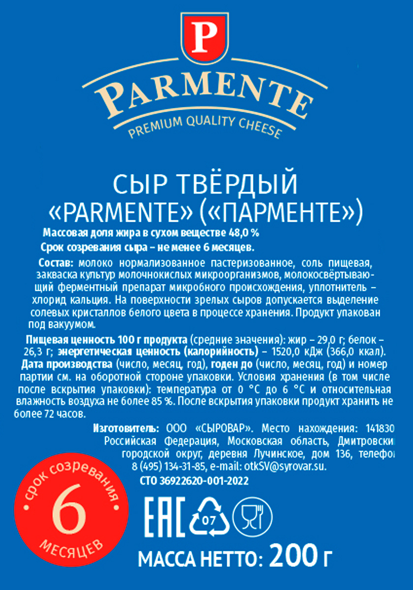 Хочу добавить к вышесказанному! Уважаемые гурманы, прежде чем писать отзывы о пармезане, почитайте этикетку!!! Там нет ни слова, что это пармезан! Посто твердый сыр, на вкус очень даже не плохой