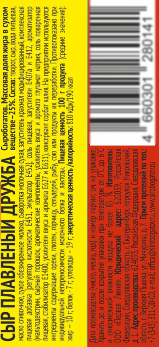 Сыр Сыробогатов Дружба плавленый 25%