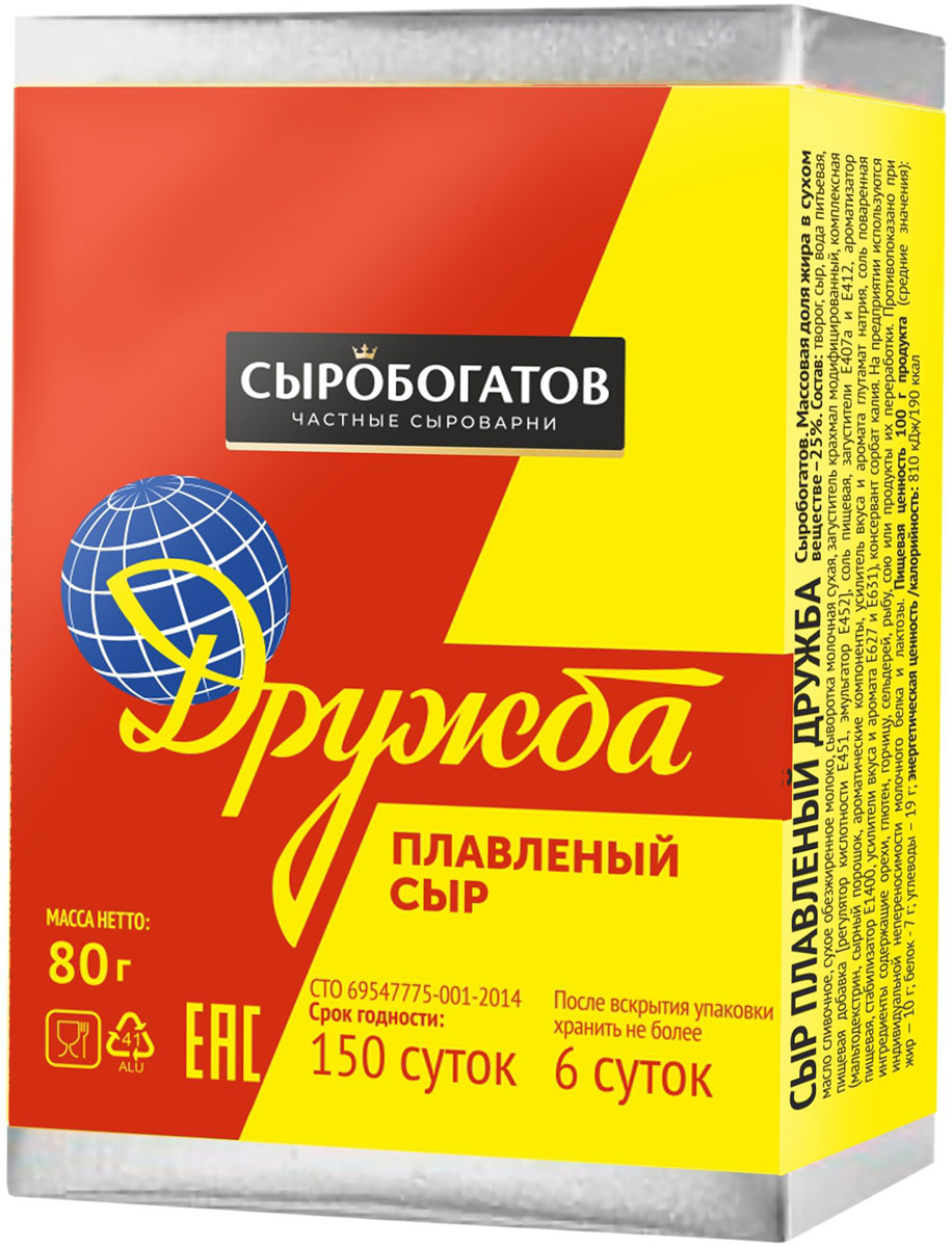 Сыр Сыробогатов Дружба плавленый 25% 80 г