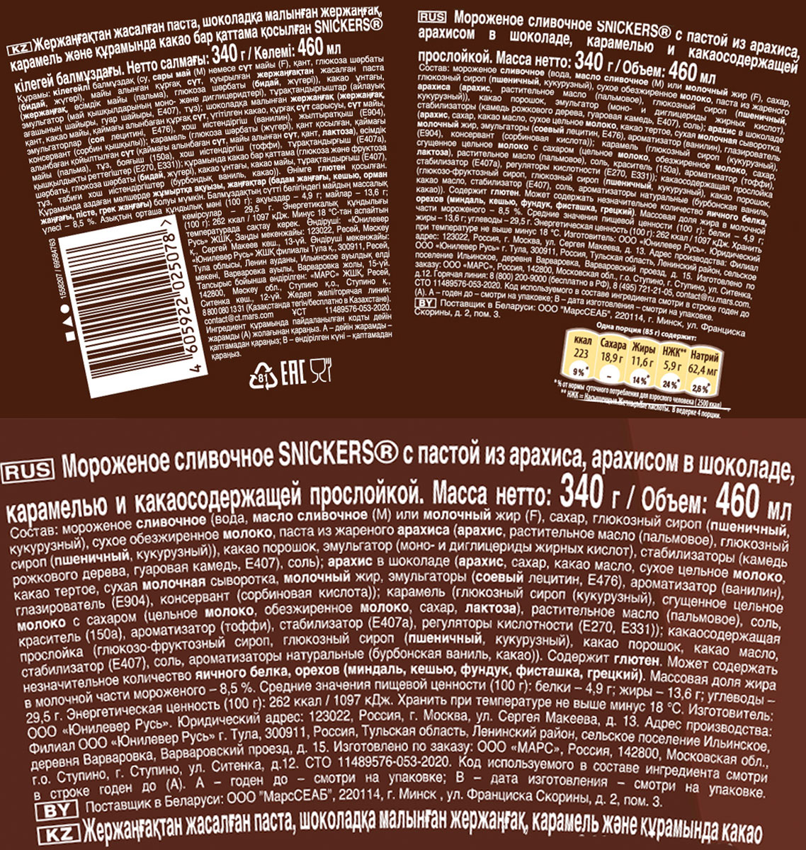 Ничего общего с мороженым «Сникерс»! Производство Россия - этим все сказано, зато цена как за испанское производство.