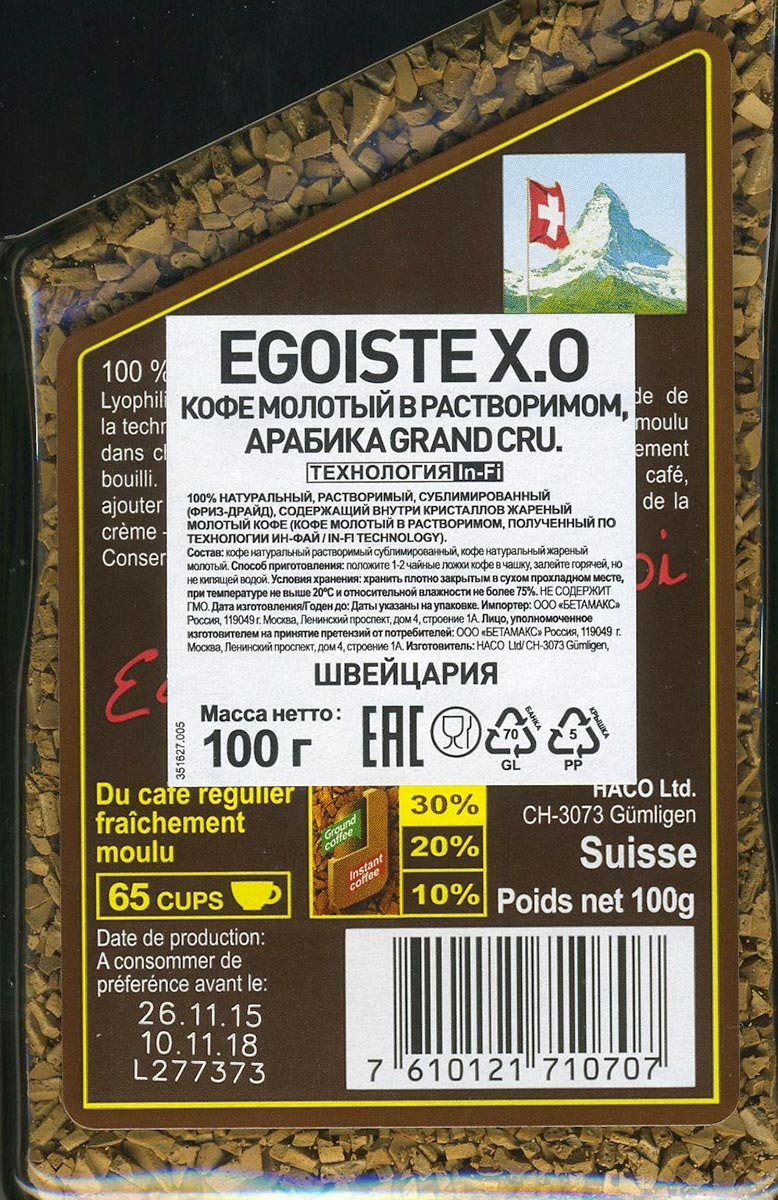 Кофе Эгоист X.O. молотый в растворимом 100 г
