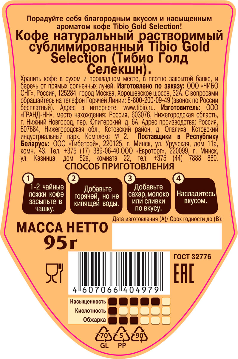 Кофе Тибио Голд Селекшн 95 г