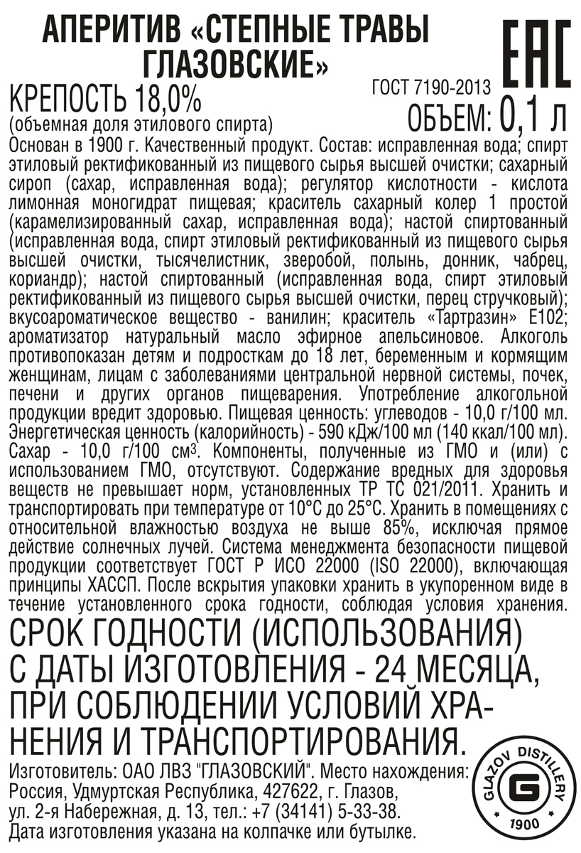 Аперитив Степные травы 0,1 л