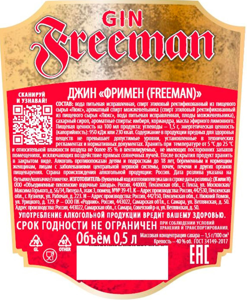 Джин Фримен 0,5 л